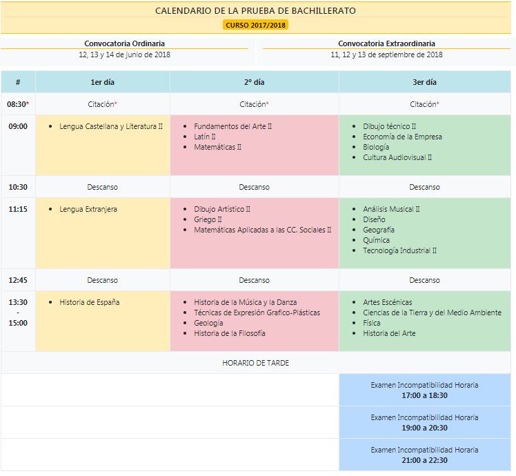 Aquí tenéis el calendario de realización de las pruebas de acceso y admisión a la Universidad.